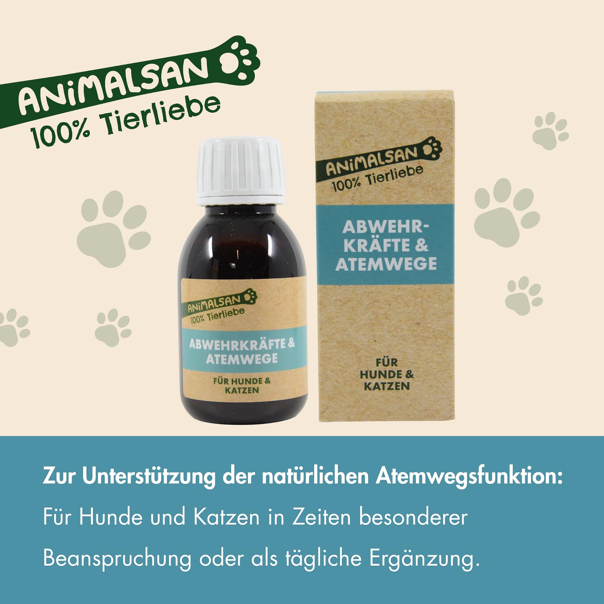 | Hinweise: | Vor Gebrauch gut schütteln und nach Aufbruch innerhalb von 21 Tagen aufbrauchen. Kühl, trocken und außerhalb der Reichweite von Kindern lagern. Animalsan Atemwege & Abwehrkräfte ist ein Ergänzungsfuttermittel für Hunde und Katzen. Es ersetzt keine tierärztliche Behandlung. |