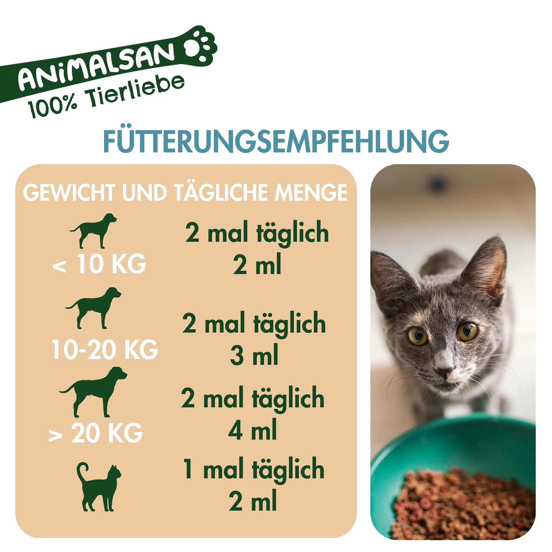 Katzen: 1–2 mal täglich 2 ml