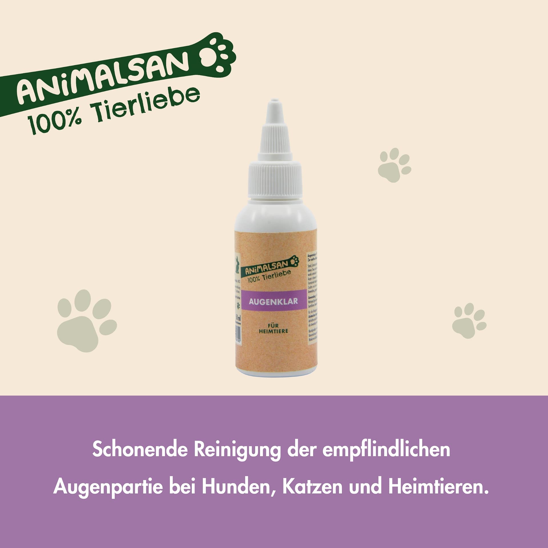 Die Augenpartie von Hunden, Katzen und Heimtieren ist besonders empfindlich und benötigt regelmäßige Pflege. Animalsan Augenklar wurde als Augenreiniger entwickelt, um Verschmutzungen, Verkrustungen und Augensekret sanft zu entfernen.