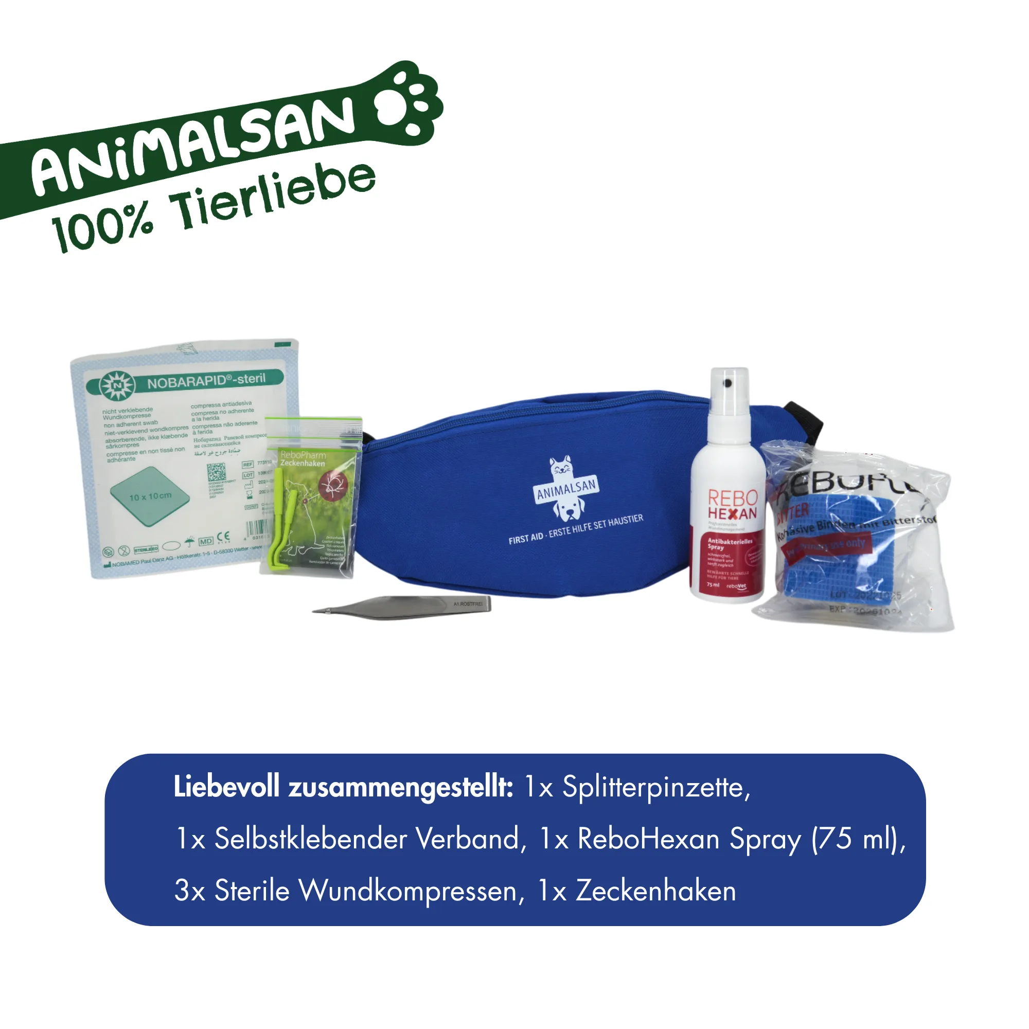 Für genau solche Situationen haben wir das kleine Erste-Hilfe-Set von Animalsan entwickelt.