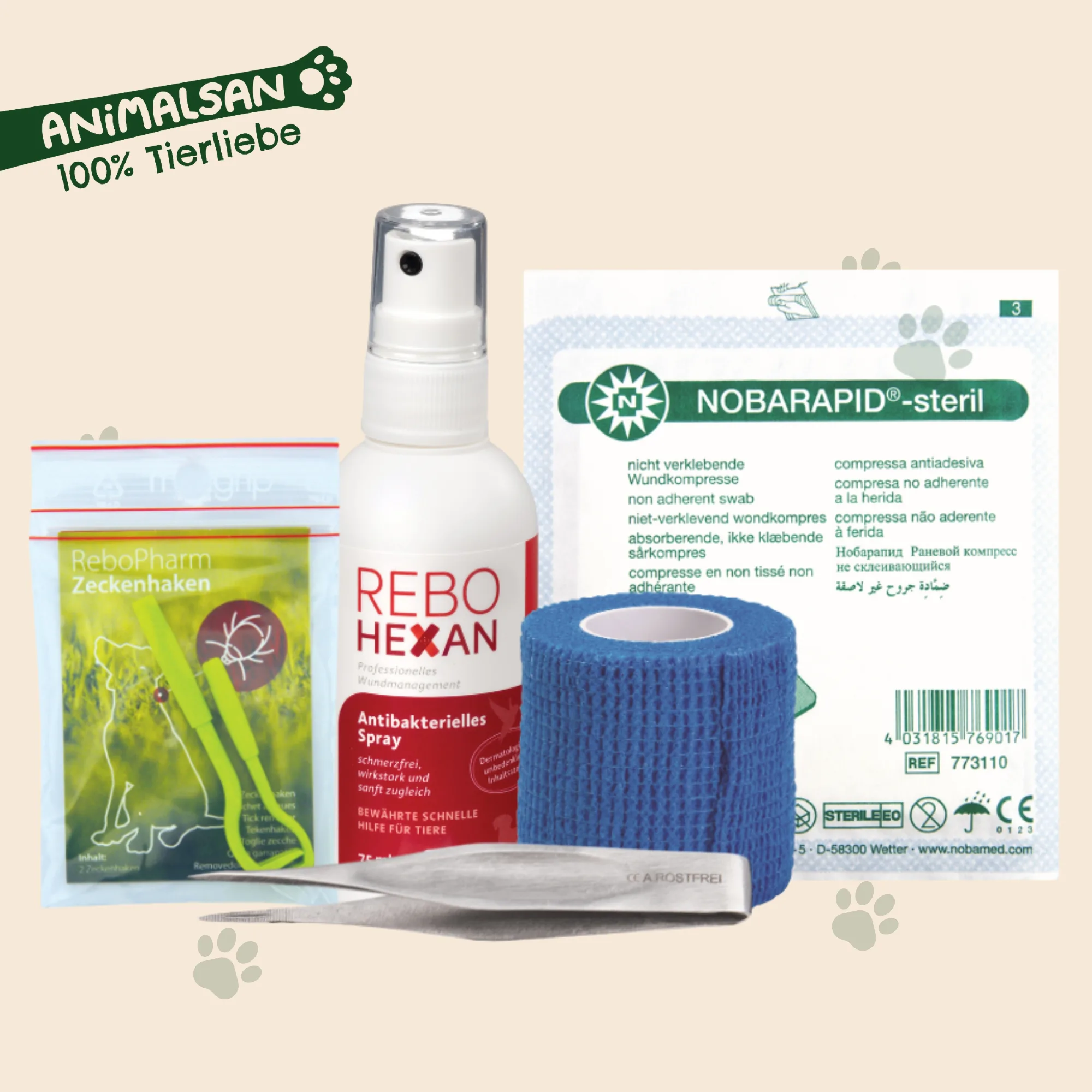 - 1x ReboHexan Spray (75 ml) – zur schonenden Unterstützung der Wundreinigung