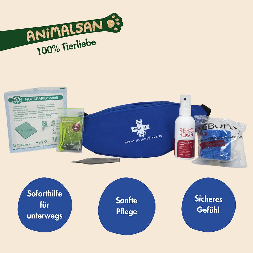 Für genau solche Situationen haben wir das kleine Erste-Hilfe-Set von Animalsan entwickelt.