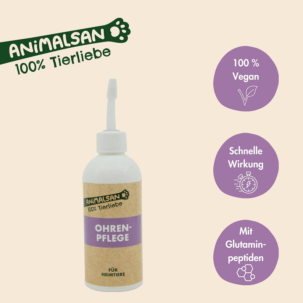 Saubere Ohren bedeuten Wohlbefinden – ganz ohne Reizungen oder aggressive Inhaltsstoffe. Animalsan Ohrreiniger wurde entwickelt, um die Ohren deines Hundes oder deiner Katze sanft zu reinigen. Die Lösung basiert auf der Elektrochemischen Aktivierungs- (ECA-)Technologie und ist wirksam gegen Bakterien, Viren und Pilze. Nach der Anwendung zerfällt sie rückstandsfrei in Wasser und Salz – für eine umweltfreundliche und hautschonende Reinigung. Der flexible Tropfer ermöglicht eine schonende Anwendung direkt im Gehörgang.